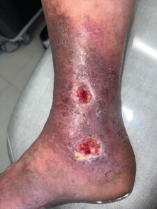 O paciente já teve ferida causada pela insuficiência venosa, mas ela está fechada no momento.