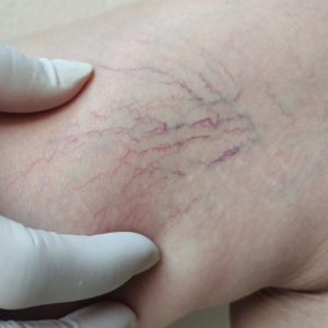 São aqueles pequenos vasos avermelhados ou arroxeados visíveis na pele. Geralmente causam mais incômodo estético do que sintomas físicos.